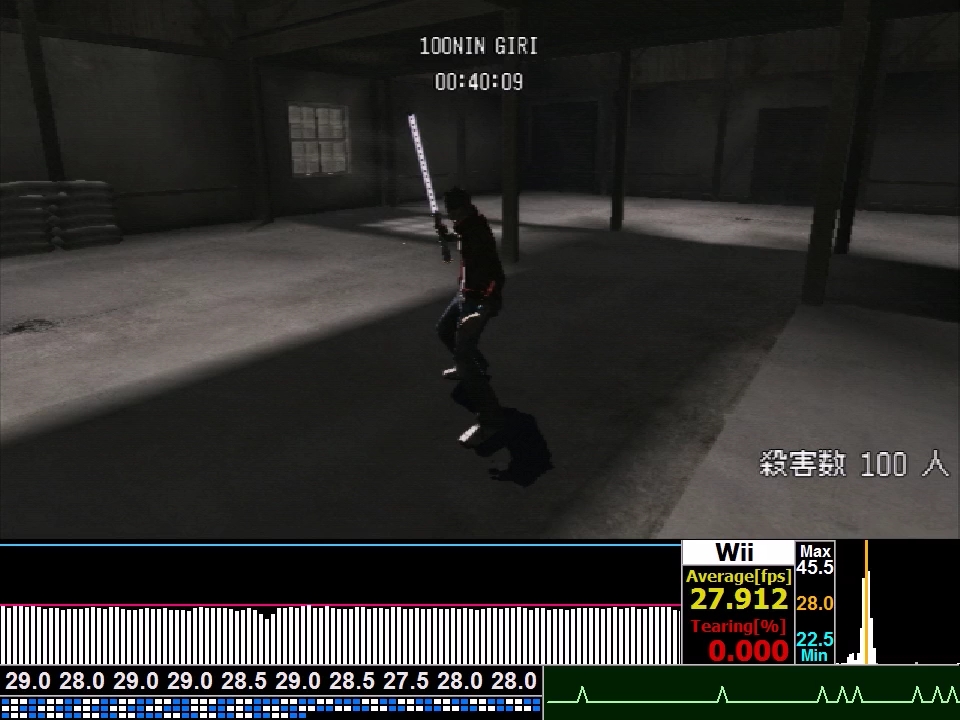 頑張ってWii版の100人殺害ミッションもフレームレート分析しました(くどいので分析結果だけ)
